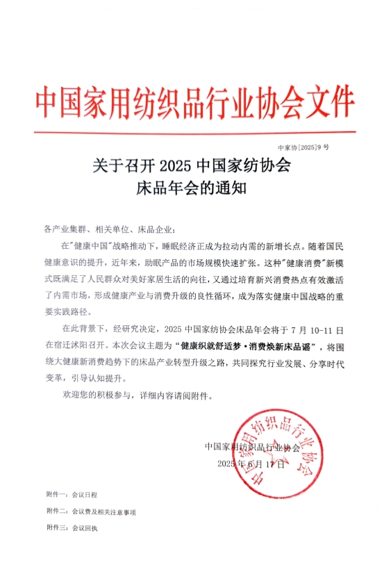 關于召開2025中國家紡協會床品年會的通知