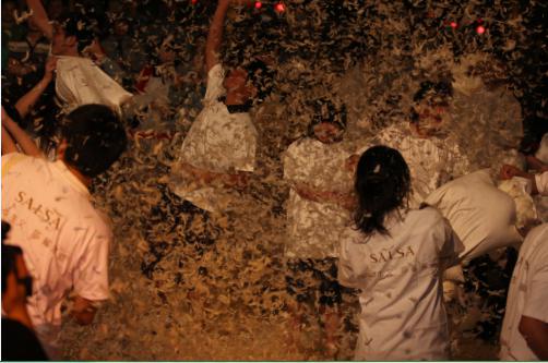 2012年7月21日,第一屆“超級枕頭大戰(zhàn)”在新華百貨廣場如期舉行了,“釋放壓力,愛枕無憂”是那晚的主題;2014年8月2日,香港莎鯊家紡再次席卷而來,第二屆“超級枕頭大戰(zhàn)”秉承“砸出火花,砸出甜蜜”的主題,一場別開生面的“超級枕頭大戰(zhàn)”狂歡派對即將展開;這一夜,枕頭不再只是睡覺的伴侶,而成了眾人的減壓工具。