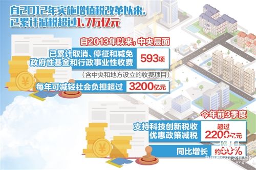近年來,我國持續減稅降費,特別是今年以來,從年初確定全年為企業減負1萬億元目標,到近日國務院依法確定和鞏固營改增試點改革成果,一系列政策相繼出臺并取得了顯著成效。